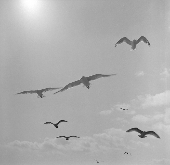 Gulls in air